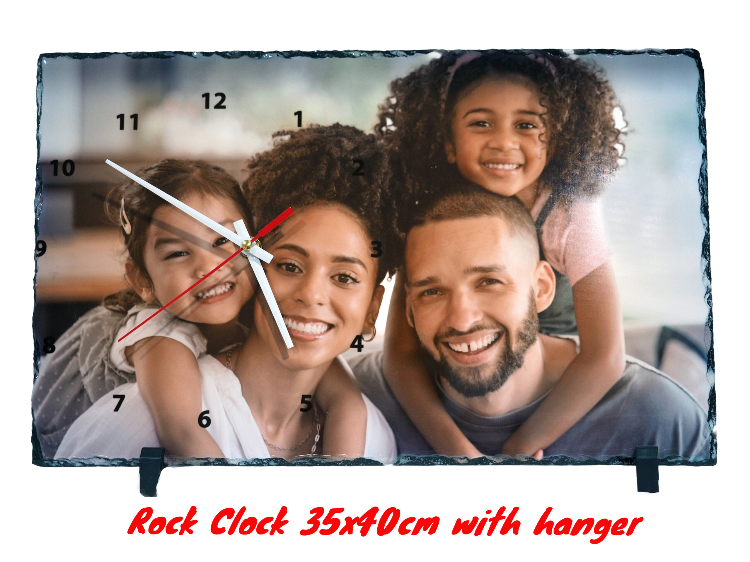 A3 Rock slate it`s a great product for Gift or for home decoration ,with the clock rock came with stand or hanger if you want to hanging on the wall as well the rectangle 30x40cm rock it came with stand or you can hanging on the wall but the photo it has to be portrait for hanging.